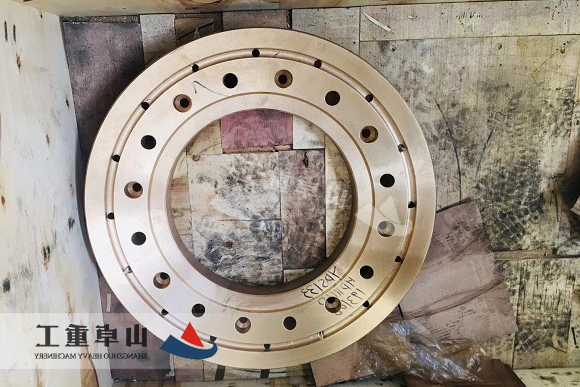 工作时,电机带动破碎机的小齿轮,小齿轮带动大齿轮,大齿轮组件( 大齿轮、大齿轮架、偏心钢套)带动偏心套组件(偏心缸套、偏心铜套)和 主轴组件(主轴、内锥、内锥衬板)以理论垂直线为中心,在铜衬套内公转 ,主轴组件在偏心铜套内以主轴的中心线可以实现自转。